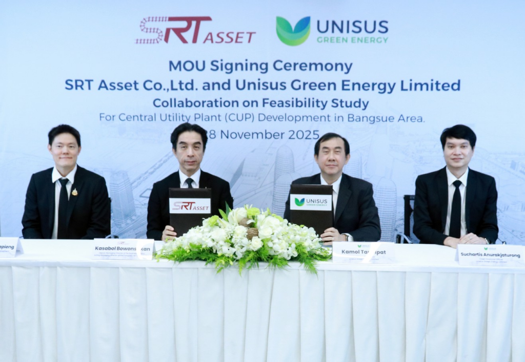 บริษัท ยูนิซัส กรีน เอ็นเนอร์จี จำกัด ผู้เชี่ยวชาญด้านการพัฒนาระบบสาธารณูปโภคส่วนกลางสำหรับโครงการภาคเอกชนรายแรกของเมืองไทย และ บริษัท เอสอาร์ที แอสเสท จำกัด (SRTA) หน่วยงานที่มีภารกิจในการบริหารทรัพย์สินของการรถไฟแห่งประเทศไทย (รฟท.) ได้จัดพิธีลงนามบันทึกข้อตกลง (MOU) ร่วมศึกษาความเป็นไปได้ในการพัฒนาระบบสาธารณูปโภคส่วนกลาง (Central Utility Plant: CUP) ในโครงการพัฒนาพื้นที่บริเวณบางซื่อกว่า 1,200 ไร่ เพื่อยกระดับพื้นที่ดังกล่าวให้เป็นเมืองอัจฉริยะต้นแบบที่ใช้พลังงานอย่างมีประสิทธิภาพสูงสุดและเป็นศูนย์กลางการเดินทางของกรุงเทพฯ ในอนาคต